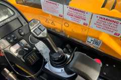 Bogate wyposażenie: kabina z dekoracją deluxe, fotel z zawieszeniem pneumatycznym, podłokietnik, dach profilowany, system 4WS, klimatyzacja.